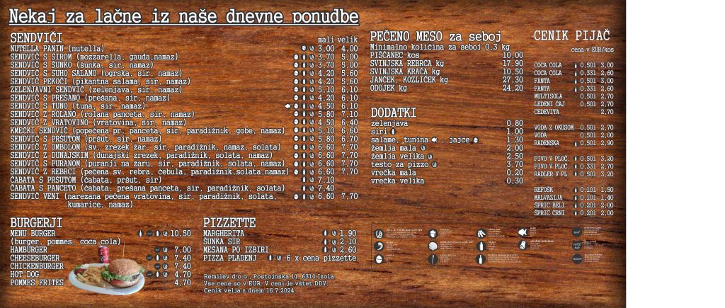 - Ješpren 5,3€ vratovina, klobasa 7€