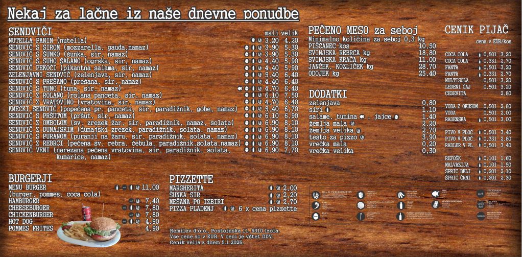 Nudimo vam široko izbiro različnih jedilnikov – od hladnih do toplih jedi na meniju.